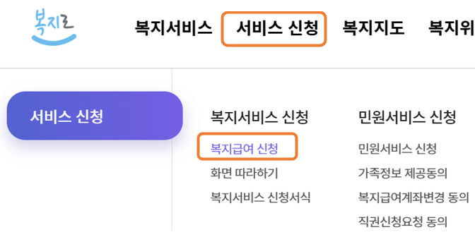 1) 복지로 홈페이지 접속 : https://www.bokjiro.go.kr